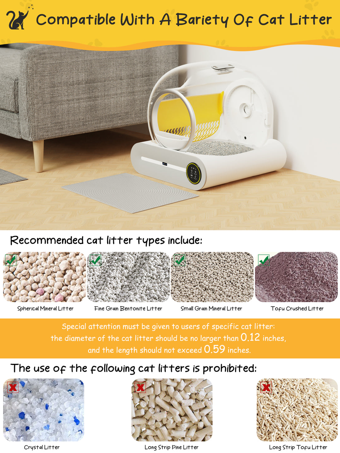 · Versatile Modes and Spacious Design: Our litter box offers a range of cleaning modes to suit your cat's needs, all easily controlled through the machine body display screen and smart app. With the one-touch sand replacement feature and the washable collection chamber, maintaining a clean litter box has never been easier. The large capacity of the box (65L) provides ample space for your cat to comfortably use the litter box, accommodating cats weighing between 1kg to 8kg.